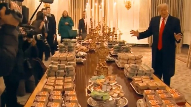 สหรัฐอเมริกา - ประธานาธิบดี โดนัลด์ ทรัมป์ ควักเงินในกระเป๋าสั่ง อาหารฟาสต์ฟู้ด เลี้ยงแขกที่ทำเนียบขาว หลังวิกฤตชัดดาวน์ทำพิษ เชฟใหญ่พักงาน