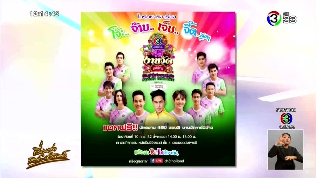 มหกรรมฉลองครบ 49 ปี ไทยทีวีสีช่อง 3 เหลือเวลาอีกเพียง 3 สัปดาห์เท่านั้น ปีนี้มาในตรีมงานวัด “สี่สิบเก้าปีแห่งความบันเทิง สนุกรื่นเริง เถิดเทิงทั่วไทย” โดยงานจะจัดขึ้นในวันที่ 2 มี.ค. นี้ ที่สนามราชมังคลากีฬาสถาน