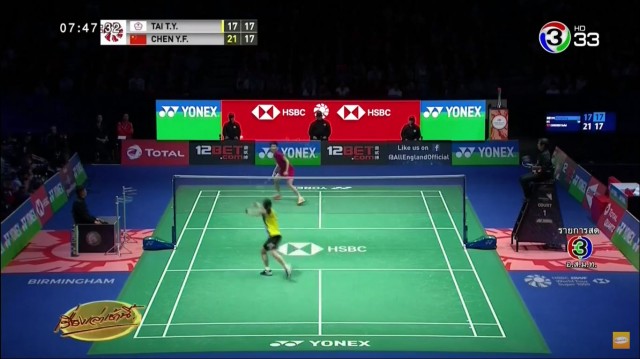 แบดมินตัน ออล อิงแลนด์ ประเภทหญิงเดี่ยวรอบชิงชนะเลิศ เฉิน ยู่เฟย มือวางอันดับ 3 จากจีน พลิกเอาชนะ ไถ้ ซื่อหยิง มืออันดับ 1 ของโลกจากไต้หวัน 2-0 เกม 21-17 , 21-17