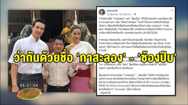 ทั้งนี้ชื่อกาสะลองและซ้องปีบ ซึ่งผู้ประพันธ์บทละครเรื่องนี้ เนียรปาตี ได้ชี้แจงว่า กาสะลอง คือชื่อบังคับ โจทย์ต่อมาคือ แฝดอีกคนจะชื่ออะไรที่มีความหมายเหมือนหรือใกล้เคียงกัน และคล้องจองกัน