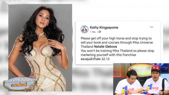 “อย่ามายุ่งและหยุดพยายามขายหนังสือและขายคอร์สผ่านมิสยูนิเวิร์สไทยแลนด์เลยนาตาลี คุณจะไม่ได้เทรนมิสไทยแลนด์ ดังนั้นหยุดมาทำการตลาดกับเรื่องนี้ได้แล้วค่ะ”