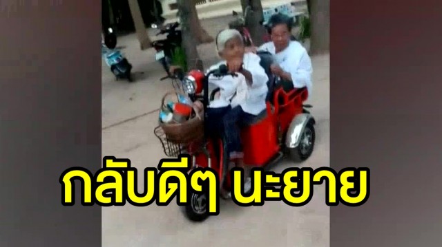 คลิปน่ารัก 2 คุณยายขับรถ 3 ล้อไฟฟ้า พากันออกจากวัดหลังมาทำบุญเสร็จ