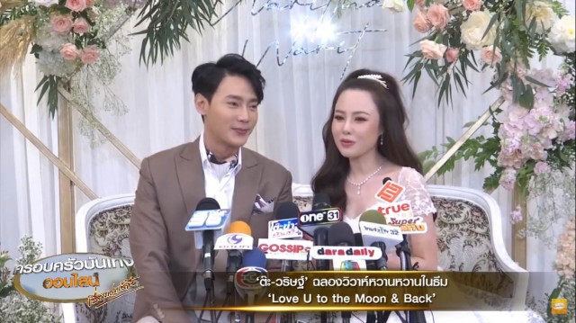 ส่วนข่าวนี้ ไปแสดงความยินดีกับนักแสดงหนุ่ม ‘ต๊ะ วริษฐ์’ ที่ถือฤกษ์ดี 19 ตุลาคม วันเสาร์ที่ผ่านมา ควงแขนแฟนสาว ‘แอน วริษฐา’ จัดพิธีฉลองวิวาห์กันหวานชื่น หลังจากทั้งคู่ได้จัดพิธีหมั้น ที่จังหวัดภูเก็ต บ้านเกิดฝ่ายหญิงไปเมื่อเดือนพฤศจิกายนปีที่แล้ว แต่ก็เพิ่งได้ฤกษ์จัดงานฉลองแต่งงานกันอีกครั้ง โดยมีธีมงานคือ Love U to the Moon & Back