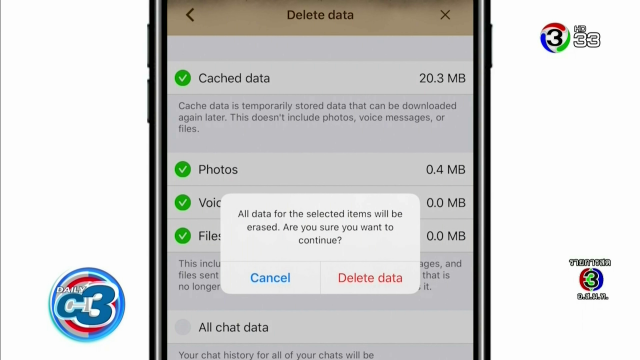 - จากนั้นเลือก Chat ลบข้อมูล