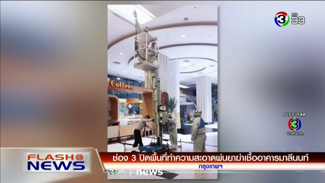 ช่อง 3 ปิดพื้นที่ทำความสะอาด พ่นยาฆ่าเชื้ออาคารมาลีนนท์