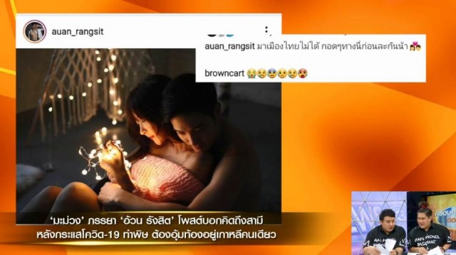 แต่จากการแพร่เชื้อโควิด-19 ที่กำลังระบาดไปทั่วโลก รวมถึงที่เกาหลีใต้ ตัวเลขผู้ติดเชื้อก็สูงมาก ก็เลยทำให้สองสามี-ภรรยาที่ตอนนี้อยู่กันคนละประเทศ (อ้วน อยู่ที่เมืองไทย ส่วนมะม่วง อยู่ที่เกาหลี) ทำให้ทั้งสองคนไม่ได้เจอกัน จากที่ปกติ ‘มะม่วง’ จะไป-กลับ ไทย- เกาหลี อยู่ตลอด กลายเป็นว่าตอนนี้ก็ต้องอุ้มท้องอายุครรภ์ 4 เดือน อยู่ที่เกาหลียาวๆ โดยที่ ‘อ้วน’ ก็ไปดูแลไม่ได้ จนต้องโพสต์บอกคิดถึงกันทางอินสตาแกรม