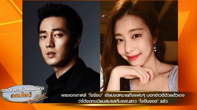 ไปกันที่ความคืบหน้าข่าวที่ทำให้สาวๆ ทั้งสาวไทยและสาวเกาหลี อกหักกันทั้งประเทศ กับข่าวการสละโสดของพระเอกหนุ่มสุดฮอต โซจีซบ ที่ต้นสังกัดของพระเอกคนดังได้ออกมาเผยถึงข่าวดีนี้บอกว่า ตอนนี้ โซจีซบ ได้จดทะเบียนสมรสกับแฟนสาวอดีตนักข่าว โจอึนจอง ที่อายุห่างกันถึง 17 ปี เป็นที่เรียบร้อยแล้ว และทั้งคู่ตัดสินใจไม่จัดงานฉลองวิวาห์เนื่องจากสถานการณ์การระบาดของเชื้อไวรัวโควิด-19