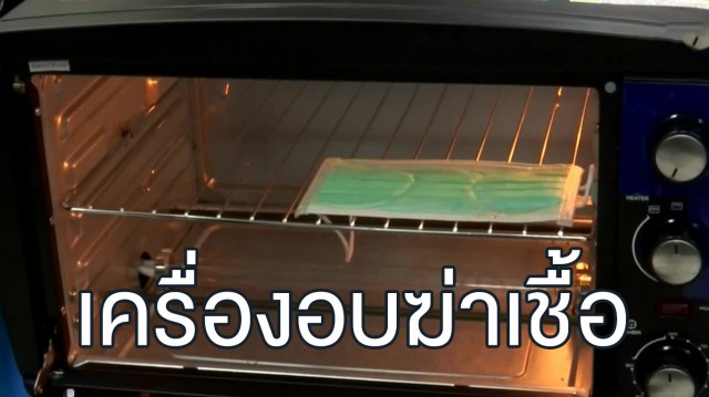 โดนเครื่องอบเชื้อ ผ่านการทดสอบใน 2 ประเด็นหลัก คือ ความเปลี่ยนแปลงทางโครงสร้างของหน้ากาก โดยได้ทดลองนำหน้ากากชนิด N95 เข้าตู้อบฆ่าเชื้อยูวี โดยใช้เวลา20 นาที พบว่า หลังฉายยูวีไปจำนวน 12 ครั้ง เมื่อนำมาดูผ่านกล้องจุลทรรศน์ จะพบความเปลี่ยนแปลงของเส้นใยหน้ากากชั้นกลางและชั้นนอก ซึ่งมีผลต่อประสิทธิภาพการกรอง จึงได้ข้อสรุปว่า จำนวนครั้งที่เหมาะสมแก่การเข้าตู้อบคือ 10 ครั้ง