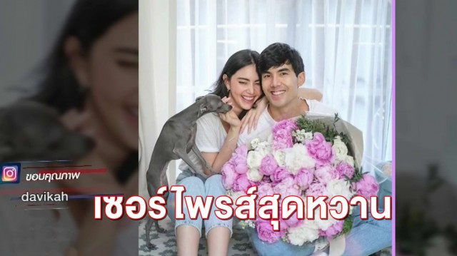 หวานไม่หยุด! 'เต๋อ ฉันทวิชช์' หอบดอกไม้ช่อโตและเค้กไปเซอร์ไพรส์วันคล้ายวันเกิด 'ใหม่ ดาวิกา'