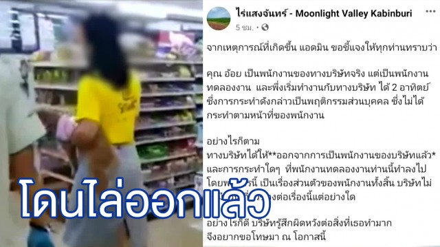 ล่าสุด นายจ้างของหญิงคนนี้ทราบถึงพฤติกรรม และเหตุการณ์ที่เกิดขึ้น ได้โพสต์ชี้แจงผ่านเพจไร่แสงจันทร์ ระบุว่า "สาวรายดังกล่าวเป็นพนักงานของบริษัทจริง แต่เป็นพนักงานทดลองงาน เพิ่งเริ่มทำงานได้ 2 สัปดาห์ และการกระทำดังกล่าว เป็นพฤติกรรมส่วนบุคคล ไม่ได้กระทำตามหน้าที่ของพนักงาน และบริษัทได้ให้ออกจากการเป็นพนักงานของบริษัทแล้ว และการกระทำใดๆ ที่พนักงานทดลองงานท่านนี้ ทำลงไปโดยพลการนี้ เป็นเรื่องส่วนตัวของพนักงานทั้งสิ้น บริษัทไม่ได้มีส่วนเกี่ยวข้องกับเรื่องนี้แต่อย่างใด
