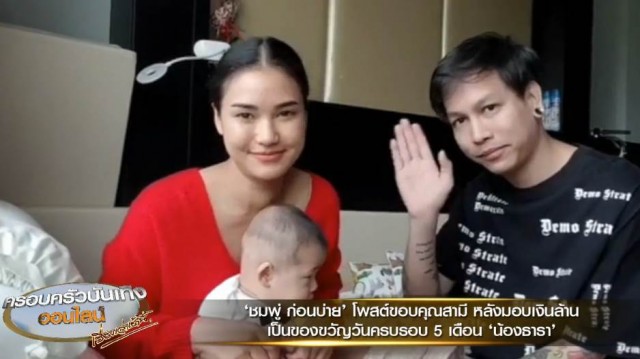 'ชมพู่ ก่อนบ่าย' โพสต์ขอบคุณสามี มอบเงินล้านเป็นของขวัญวันครบรอบ 5 เดือน 'น้องธารา'