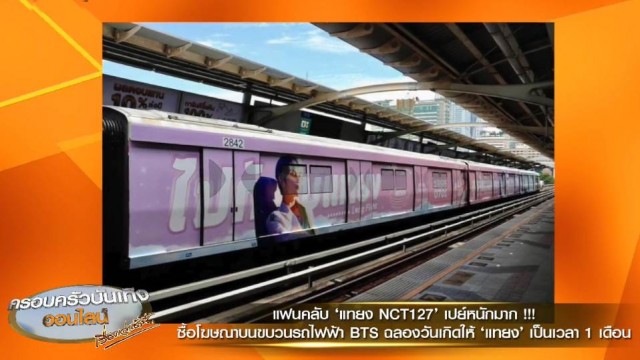 ส่วนข่าวนี้เรียกว่าต้องยอมให้กับความรวยของแฟนคลับ ของหนุ่ม แทยง วง NCT127 จริงๆ เพราะล่าสุดได้จัดหนัก ด้วยการซื้อโฆษณาบนรถไฟฟ้า BTS ของไทย ซึ่งตอนนี้รถไฟฟ้าขบวนดังกล่าว ได้กลายเป็น รถไฟฟ้าสายแทยง เป็นที่เรียบร้อยแล้ว เพื่อเป็นการฉลองวันเกิดอายุครบ 26 ปี (นับแบบเกาหลี) ให้กับ แทยง ซึ่ง แทยง เกิดวันที่ 1 กรกฎาคม และถือเป็นศิลปินเกาหลีคนแรกที่แฟนคลับซื้อโฆษณาบนขบวนรถไฟฟ้าให้แบบนี้
