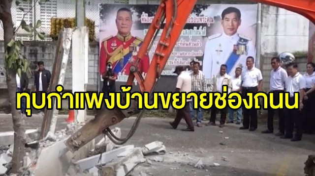 เมื่อเวลา 10.00 น. วานนี้ (25 ก.ค.) พล.ต.ท.คำรณวิทย์ ธูปกระจ่าง ว่าที่ผู้สมัคร นายก อบจ.ปทุมธานี ได้นำทีมคนรักปทุมพร้อมเครื่องจักรทุบกำแพงบ้านของ พลอากาศเอกสักก์สกล แสงสุกรัตน์วดี อดีตผู้บังคับกองพันทหารอากาศโยธิน 1 รักษาพระองค์ หมู่บ้านเพอร์เฟคพาร์ครังสิต ตำบลบ้านกลาง อำเภอเมือง จังหวัดปทุมธานี เพื่อขยายช่องจราจรเลี้ยงหักศอก 90 องศา