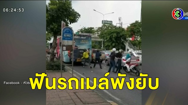 คนขับรถเมล์ เล่าว่า รับนักเรียนสถาบันช่างแห่งหนึ่ง เมื่อมาถึงจุดเกิดเหตุ มองเห็นกลุ่มวัยรุ่นมากันกว่า 20 คน ขี่จยย.ถือมีดไล่ตามมา ขึ้นรถเมล์ไปทำร้ายคู่อริไม่ได้ จึงฟันรถเมล์แทน สภาพรถพังยับเยิน บริเวณท้ายรถ กระจกด้านหลังเสียหาย