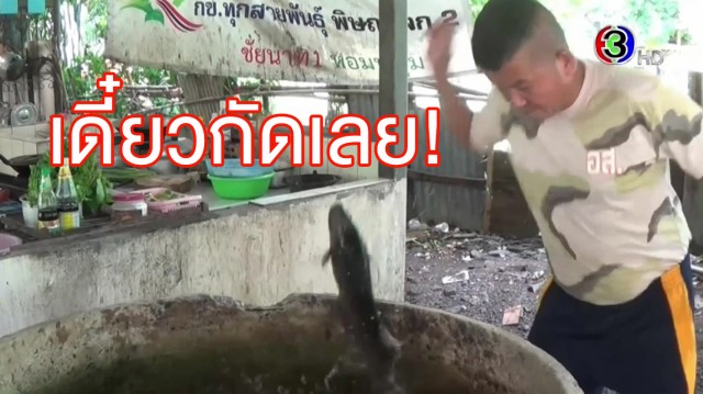 ไม่เคยเจอ! 'ปลาแรดดุ' กระโดดงับนิ้วลูกค้าที่มายืนสั่งซื้ออาหาร