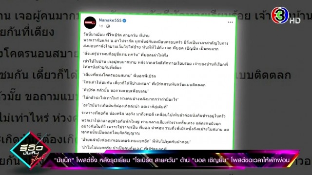 'น้าเน็ก' โพสต์ซึ้ง หลังรุดเยี่ยม 'โรเบิร์ต สายควัน' ด้าน 'บอล เชิญยิ้ม' โพสต์ขอเวลาให้พักผ่อน