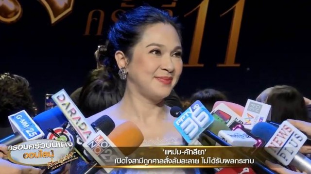 มากันที่ 'แหม่ม คัทลียา' ที่เมื่อวานนี้ก็ออกงาน นักข่าวก็ได้ถามถึงข่าวของ สามี "สงกรานต์ กระจ่างเนตร" ที่ถูกศาลสั่งล้มละลาย