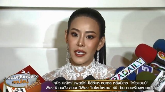 หนิง ปณิตา เผยยังไม่ได้รับหมายศาล หลังมีข่าว ไฮโซแชมป์ เตรียมฟ้อง 6 คนดัง พร้อมเผยเรื่องคดีที่เคยยื่นฟ้อง ไฮโซน้ำหวาน เรียกค่าเสียหาย 40 ล้านบาท ตอนนี้ได้ถอนฟ้องหมดแล้ว และเคลียร์จบกันด้วยดี เพราะไม่อยากอยู่ในวังวนการขึ้นศาลอีก