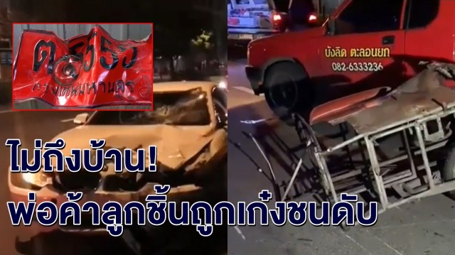 เก๋งหรูป้ายแดงซิ่งชนรถขายลูกชิ้น ทำพ่อค้าเสียชีวิตคาที่ คนขับเผ่นหนี เพื่อนบ้านช็อกผู้ตายเป็นเสาหลักของครอบครัว