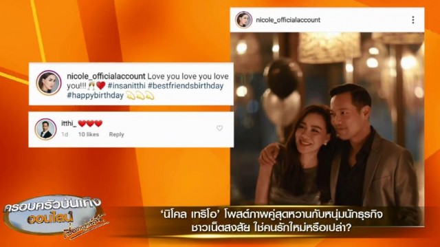 และ ‘นิโคล’ ก็ได้เข้ามาคอมเม้นต์ตอบว่า "my very close friend ka" (เพื่อนที่สนิทมากๆ ค่ะ)