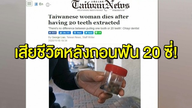 สาวไต้หวันดับ หลังหมอถอนฟันรวดเดียว 20 ซี่ พ่อแม่สงสัยหลังผลชันสูตรไปอีกทาง