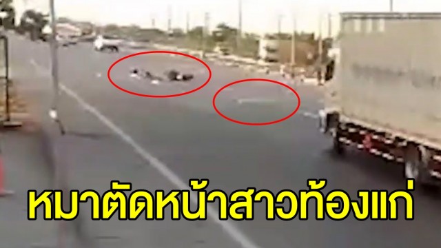 ระทึก! สาวท้อง 8 เดือนขี่มอไซค์ ถูกสุนัขพุดเดิ้ลวิ่งตัดหน้า ล้มหวิดถูกรถทับซ้ำ