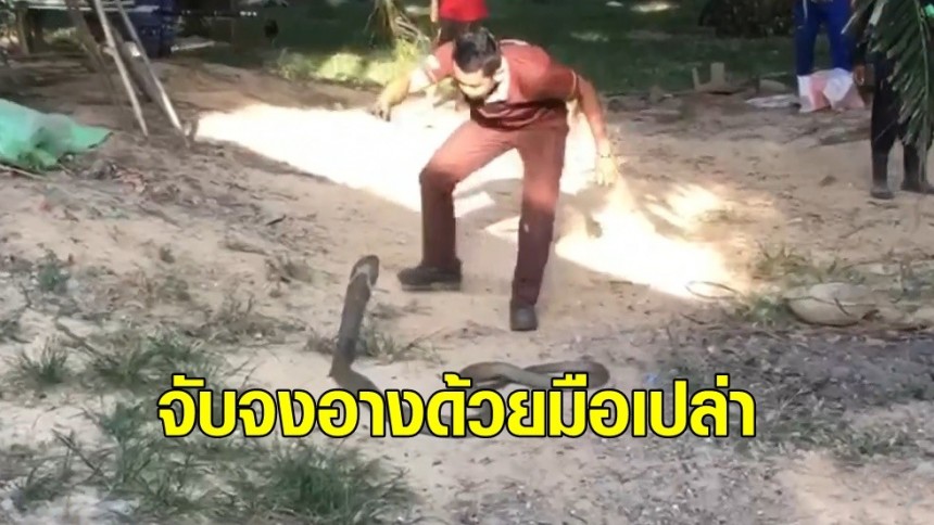 นาทีกู้ภัยจับ 'งูจงอาง' ด้วยมือเปล่า โชว์เล่นกับงู เตือนความสามารถเฉพาะตัว ห้ามเลียนแบบ