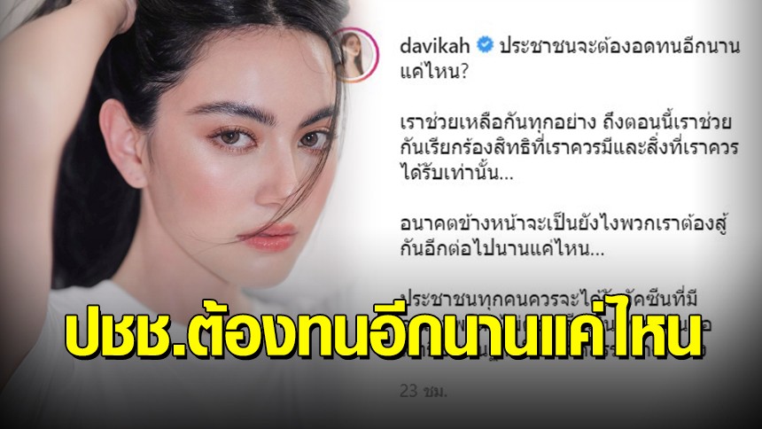 ถึงแม้จะมีการออกมาเตือนการ call out ของดารา คนมีชื่อเสียง ล่าสุดนักแสดงสาว ‘ใหม่ ดาวิกา’ ก็ได้ออกมาแสดงความคิด ความเห็นถึงเรื่องการบริหารงานของรัฐบาลด้วยเช่นกัน โดยได้โพสต์ภาพจอดำ ภาพข่าวคนเสียชีวิตด้วยโควิด อยู่กลางถนน และเป็นยอดผู้ติดเชื้อโควิดสูงกว่า 13,000 คน ผ่านอินสตาแกรมส่วนตัว ที่มียอดผู้ติดตามกว่า 14 ล้านคน โดยโพสต์ตั้งคำถามว่า