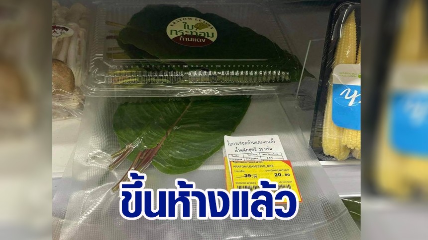 ขึ้นห้างฯแล้ว! ‘ใบกระท่อม’ แพ็กอย่างดีวางขายบนเชลฟ์ผักในห้าง แปะป้ายเหลืองจัดโปรโมชันลดราคา