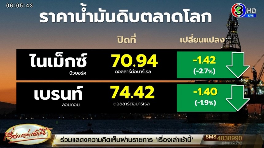 ล่าสุด (10 ธ.ค. 64) ตลาดไนเม็กซ์ นิวยอร์ก ลดลง 1.42 ดอลลาร์สหรัฐฯ/บาร์เรล ปิดที่ 70.94 ดอลลาร์สหรัฐฯ/บาร์เรล