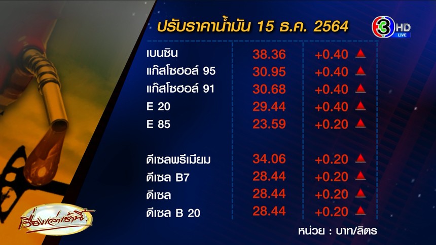 ในวันนี้ (15 ธ.ค. 64) ราคาน้ำมันไทยปรับขึ้นอีกครั้ง ตั้งแต่ตอนตีห้าที่ผ่านมา