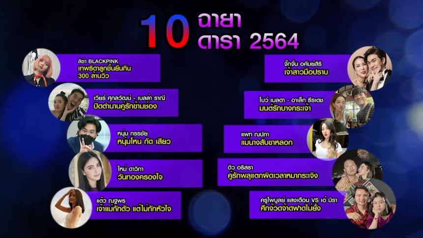 เผย 10 ฉายาดารา ประจำปี 2564 ‘ลิซ่า , เวียร์ – เบลล่า , แต้ว , จั๊กจั่น’ ติดโผ