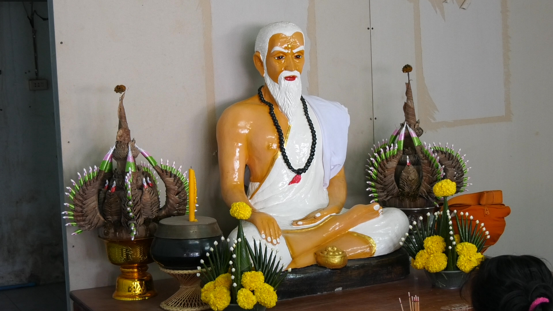 วันนี้ (29 ธ.ค.) น.ส.พรรณนา บัวเสน อายุ 48 ปี อยู่บ้านเลขที่ 245 ต.ด่าน อ.กาบเชิง จ.สุรินทร์ ซึ่งเป็นแม่ค้าขายหมาล่าและปลาหมึกย่าง ได้นำผลไม้เครื่องเซ่นไหว้ มาไหว้รูปปั้นพ่อปู่ฤาษีสิงห์ ซึ่งเป็นรูปปั้นฤาษีที่ชาวตลาดตาแงะเคารพนับถือ และเคยให้เลขเด็ดถูกมาแล้วหลายงวด ซึ่งตั้งอยู่ภายในตลาดตาแงะ ตรงข้ามตลาดชายแดนช่องจอม ต.ด่าน อ.กาบเชิง จ.สุรินทร์ พร้อมนุ่งขาวห่มขาวมากราบไหว้ หลังจากน.ส.พรรณนา บัวเสน ซึ่งเป็นแม่ค้าขายหมาล่าและปลาหมึกย่างอยู่หน้าตลาดตาแงะ ได้เคยยกมือไหว้ศาลที่หน้าตลาดตาแงะพร้อมขอเลขเด็ด บนบานขอให้ถูกหวยในงวดนี้เมื่อ 2-3 วันก่อน ก่อนที่แม่ค้าคนดังกล่าวจะกลับบ้านไปนอนฝันว่า พ่อปู่ฤาษีสิงห์มาหาและให้แม่ค้าขายหมาล่าและปลาหมึกย่าง มาเซ่นไหว้ในวันเกิดของฤาษี คือวันพุธ ก่อนแล้วถึงจะให้เลขเด็ด จึงได้มาทำพิธีเซ่นไหว้ในวันนี้