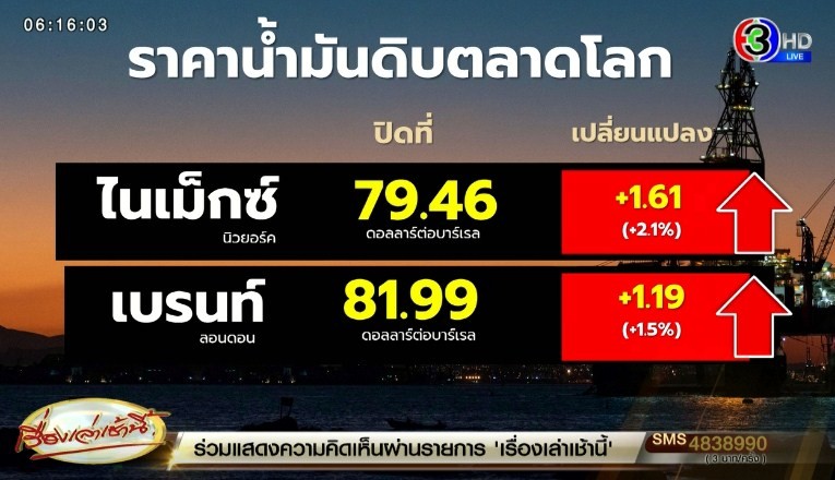 ตลาดไนเม็กซ์ นิวยอร์ก เพิ่มขึ้น 3.23 ดอลลาร์สหรัฐฯ/บาร์เรล ปิดที่ 69.49 ดอลลาร์สหรัฐฯ/บาร์เรล