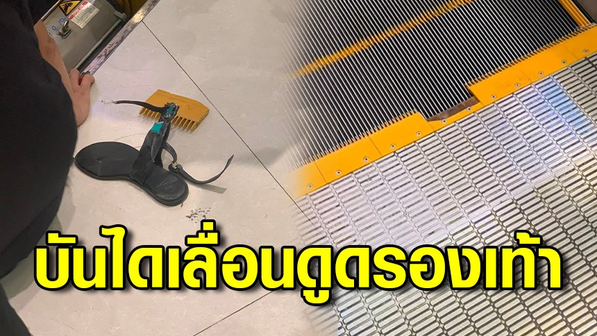 สาวโพสต์เตือนภัย บันไดเลื่อนห้างฯ ดังชำรุด ดูดรองเท้าขาดยับ