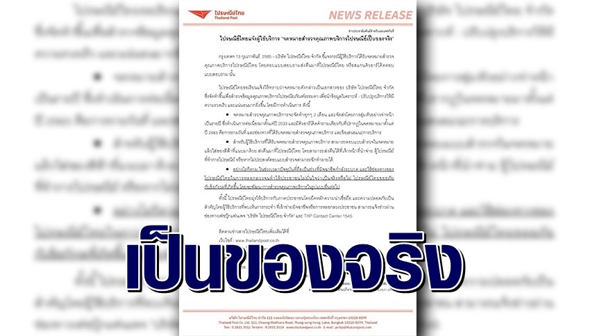 'ไปรษณีย์ไทย' แจ้งผู้ใช้บริการ 'จดหมายสำรวจคุณภาพ' เป็นของจริง