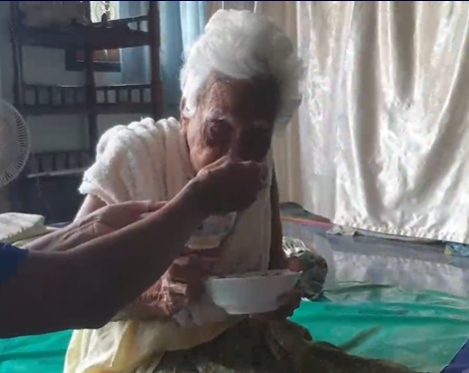 ผู้สื่อข่าวได้รับแจ้งว่ามีคุณทวดอายุเกือบ 100 ปีหรือ “คุณทวด 5 แผ่นดิน” เป็นอัมพฤกษ์ และติดโรคโควิด-19 ท่ามกลางความเป็นห่วงของลูก ๆ หลาน ๆ เหลน ลื่อ ลืบ รวมแล้วกว่า 100 คน แต่ในที่สุดลูกๆ หลาน ๆ ช่วยกันปรนนิบัติดูแลรักษาคุณทวดที่บ้านจนหายเป็นปกติ กลับมีสุขภาพร่างกายที่ดีและจิตใจที่ร่าเริงแจ่มใส รับประทานอาหาร อาหารเสริม ผลไม้ได้ตามปกติ