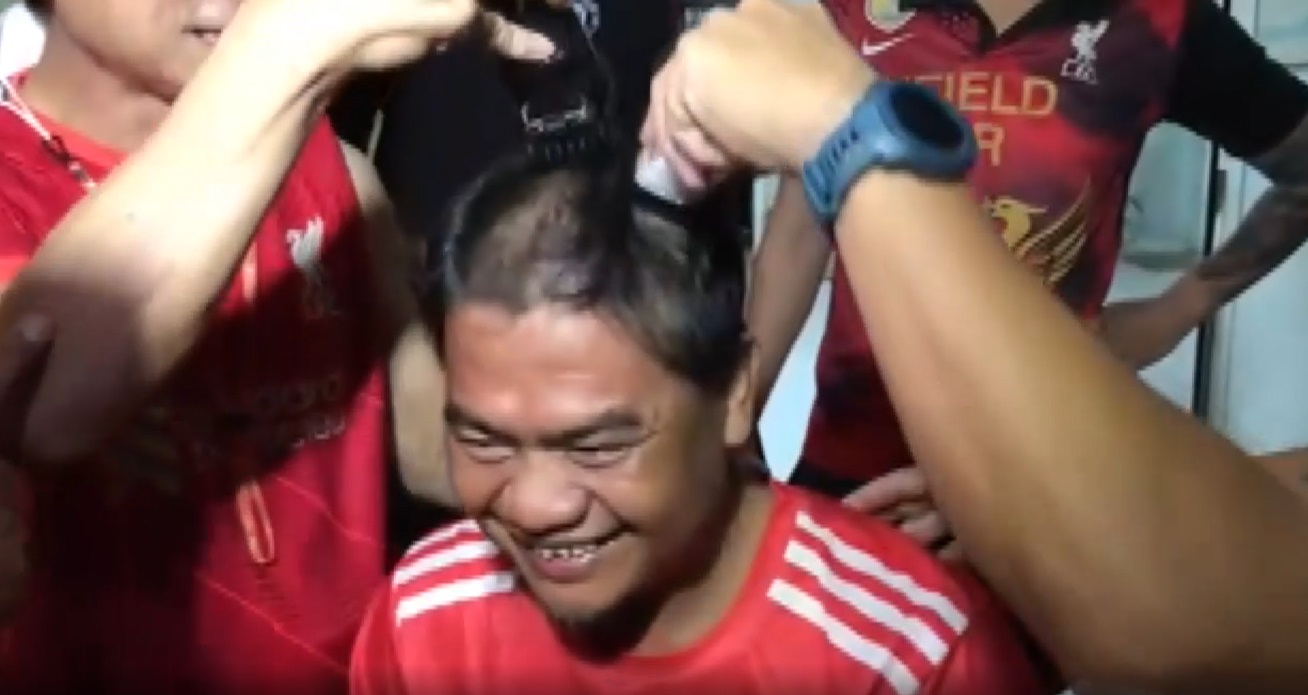 ทำให้ในวันนี้จึงเป็นภาพที่แฟนบอล แมนยูฯ 2 คน ประกอบด้วย น้องโต และ น้องอ้าย ต้องถูกโกนหัวเพราะคะแนน แมนยูฯ น้อยกว่า ลิเวอร์พูล จึงเกิดภาพวันนี้ขึ้น ท่ามกลางสักขีพยานและชาวบ้านที่อยู่ข้างบ้านที่ทราบข่าวก็ออกกมาดู ที่เป็นที่สนุกสนาน เมื่อตกลงกันว่า จะใส่รองบล็อก ให้เป็นเงาๆ ตอนตัด แต่ปรากฏว่า รองบล็อกปัตตาเลี่ยนหล่น จึงทำให้ต้องตัดหัวเกรียนสร้างความสุขสนุกสนานให้กลับทุกคนที่มาร่วมงาน