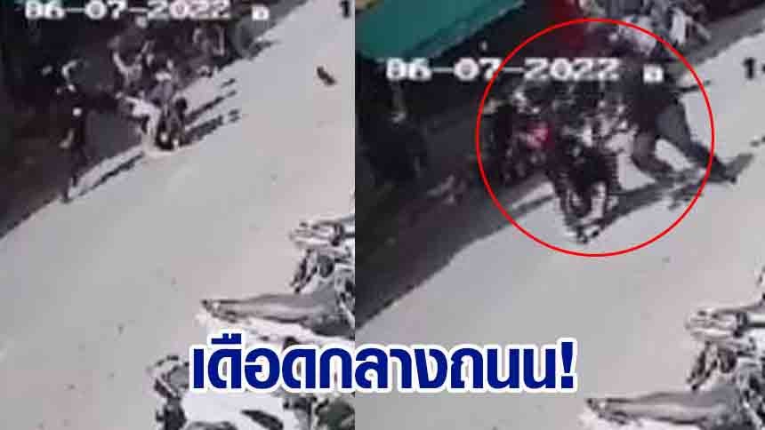 วงจรปิดจับภาพชัด! นร.อาชีวะกว่า 20 คน ยกพวกตีกันบริเวณหน้าห้างดังเมืองลพบุรี