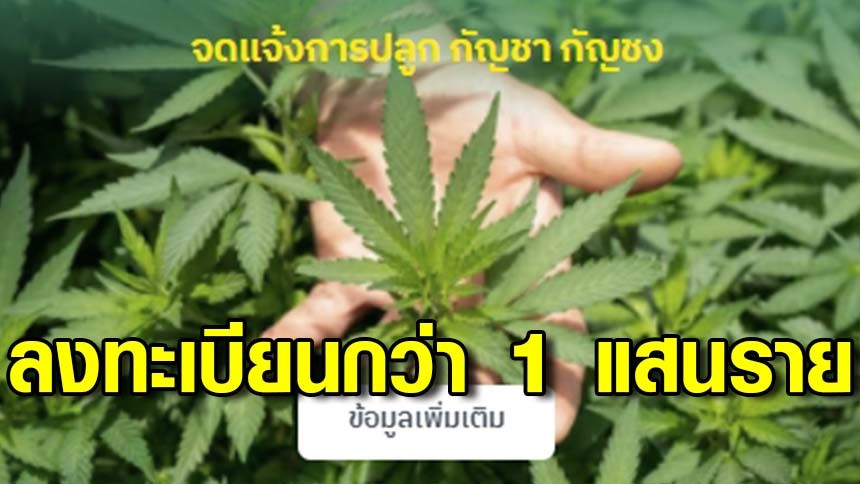 ยอดจดแจ้งแอพลงทะเบียนกัญชา ลงทะเบียนแล้วกว่า 1 แสนราย