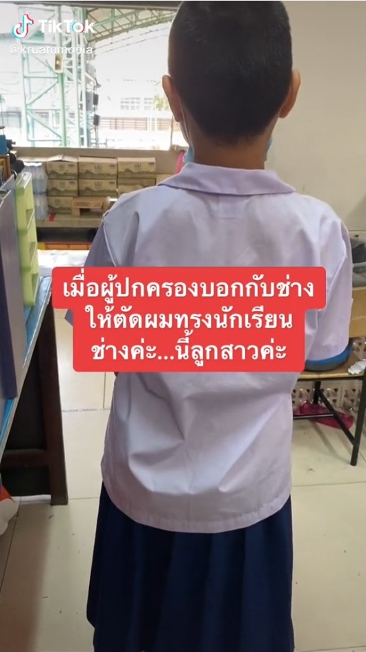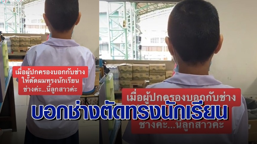 ผู้ใช้ TikTok บัญชี kruammonia คุณครูท่านหนึ่งได้แชร์คลิปนักเรียนหญิง หลังจากที่น้องได้ไปตัดผมมาใหม่ โดยในคลิปบรรยายว่า “เมื่อผู้ปกครองบอกกับช่างให้ตัดผมทรงนักเรียน ช่างคะ นี่ลูกสาวค่ะ” พร้อมกับระบุแคปชั่น “จะโกรธใครก่อนดี ระหว่าง ผู้ปกครองกับช่างตัดผม อดทนเดียวก็ยาวแล้วลูก”