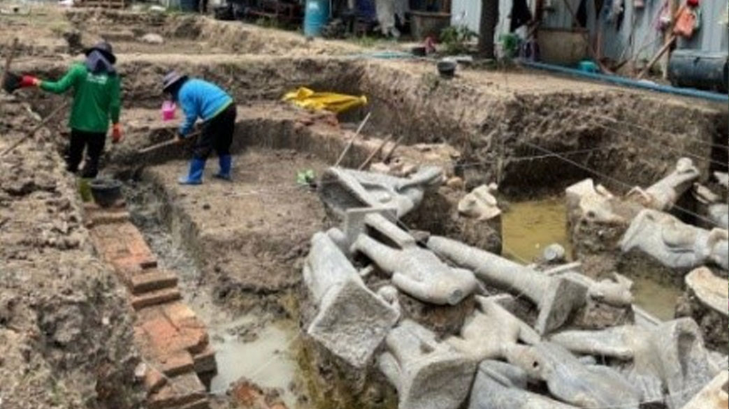 ขุดพบ "ตุ๊กตาหินสลักโบราณ" กว่า 130 ตัว ใต้กำแพงรอบวัดพระแก้ว