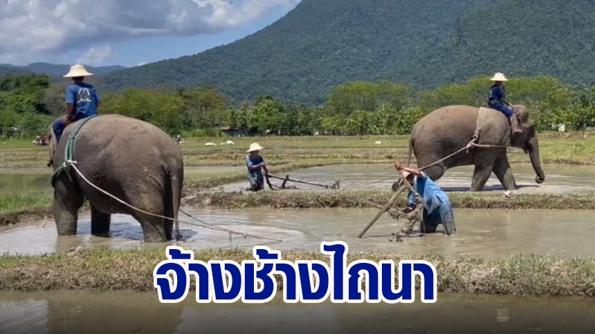 แปลกแต่จริง! เจ้าของโฮมสเตย์จ้างช้าง2 เชือกไถนา หลังเจอพิษโควิด ทำตกงานนานกว่า 2 ปี