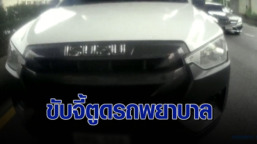 วิจารณ์ยับ! กระบะตู้ทึบขับจี้ตูด รถพยาบาลเปิดสัญญาณฉุกเฉิน หวั่นเกิดอุบัติเหตุ