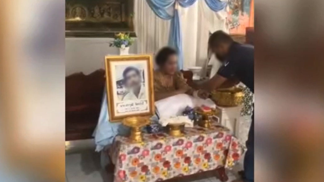 จากกรณีผู้ใช้เฟซบุ๊ก ชื่อ Donlaya Manopai Paem ระบุข้อความ พร้อมภาพว่า ...แป๋มมาผูกแขน (อาม♥️หนึ่ง) ยินดีด้วยนะ น้ำตาเต็มวัด #ญาติลูกพี่ลูกน้อง ... พร้อมภาพ เป็นภาพหญิงเจ้าสาวกำลังทำพิธีผูกแขนกับภาพถ่ายฝ่ายชาย (ผู้เสียชีวิต) ด้านหลังเป็นโลงศพ