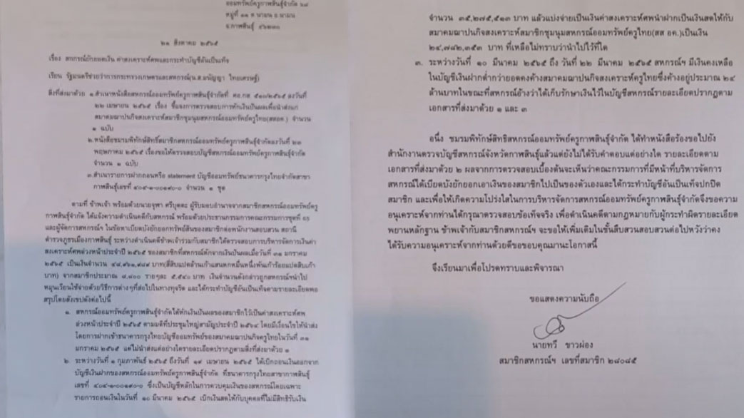 ร้อง รมช.เกษตร สอบ สหกรณ์ออมทรัพย์ครูกาฬสินธุ์ ยักยอกเงิน-แต่งบัญชีอมเงินสงเคราะห์ศพ 50 ล้าน