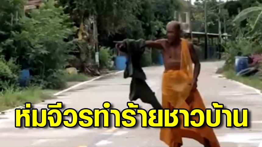 ชายเพี้ยนห่มจีวรแก้ผ้าใช้จอบไล่ทำร้ายชาวบ้าน