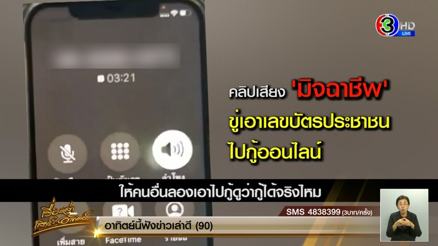 แท็กที่เกี่ยวข้อง มิจฉาชีพ ,แก๊งคอลเซ็นเตอร์ ,มิจฉาชีพโทรขอเลขบัตรประชาชน