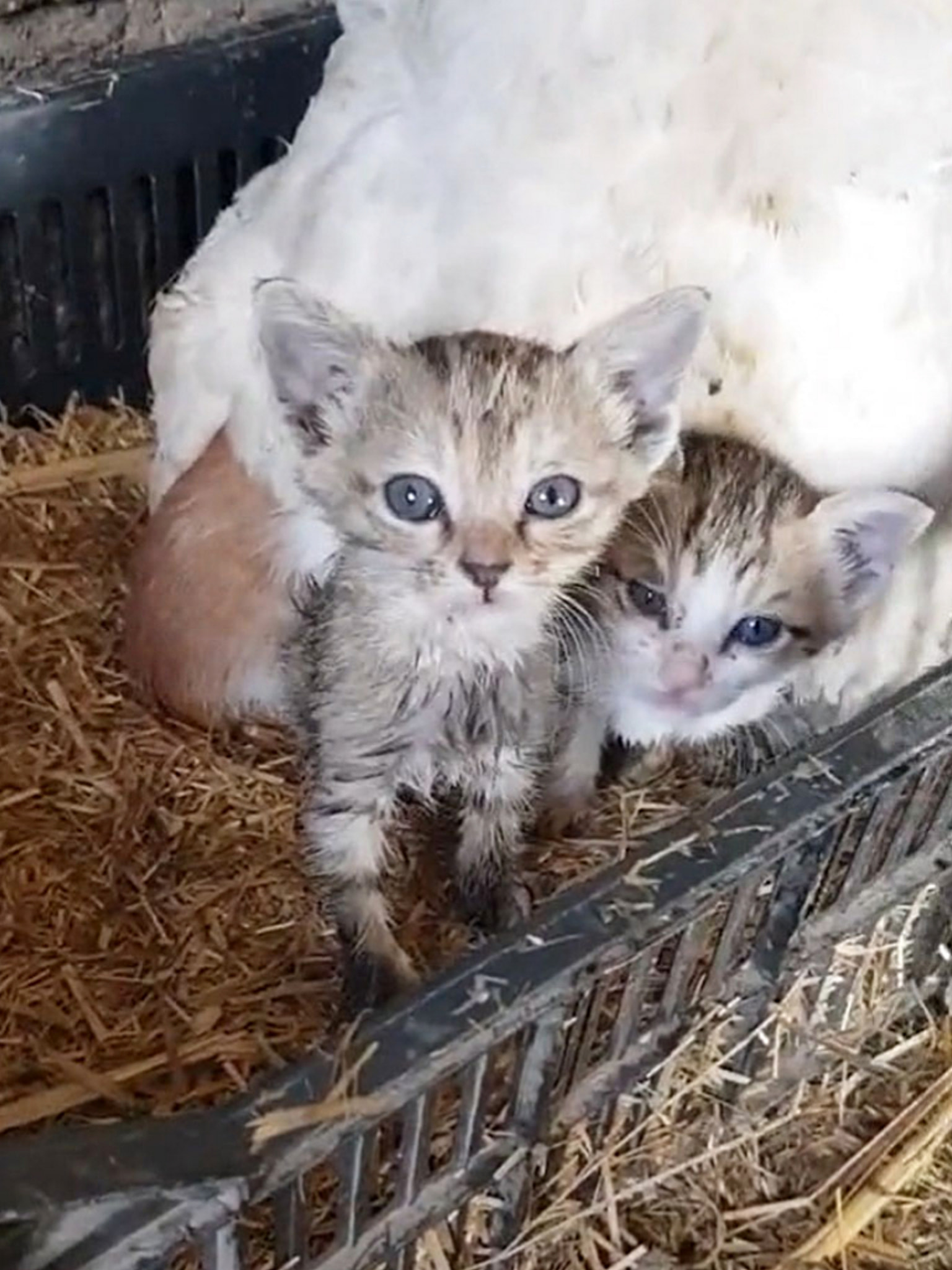 คุณSurhi เล่าว่า “ตอนนี้ฉันได้ยินเสียงแมวร้องมาจากเล้าไก่ และฉันก็อยากรู้ว่าเกิดอะไรขึ้น ไก่ของเราอาจตกอยู่ในอันตราย เมื่อฉันรู้ว่าแมวมาจากใต้ท้องไก่ ฉันตัดสินใจที่จะบันทึกภาพมันเพื่อไม่ให้พลาดช่วงเวลาพิเศษนี้ และฉันประหลาดใจมากที่มีลูกแมวน่ารักสามตัวอยู่ที่นั่น” และต่อมาเขาก็มาตามหาแม่ของลูกแมว และพบว่าแม่ของน้องแมวได้จากไปแล้วเขาเจอแม่แมวแถวทะเลสาบใกล้ฟาร์ม และอาจจะเป็นสาเหตุหนึ่งที่แม่ไก่ดูแลลูกแมวเหล่านี้ ????