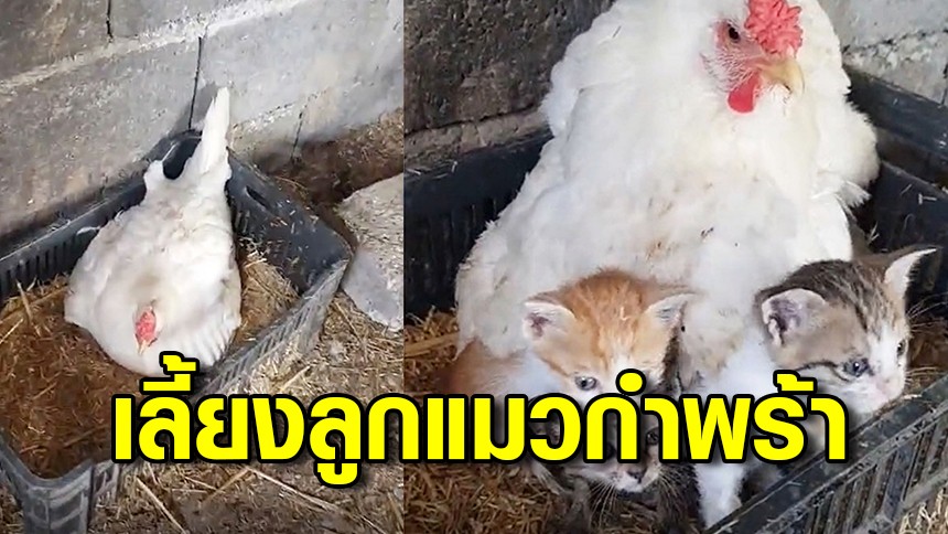 แม่ไก่กกลูกแมวกำพร้า 3 ตัว